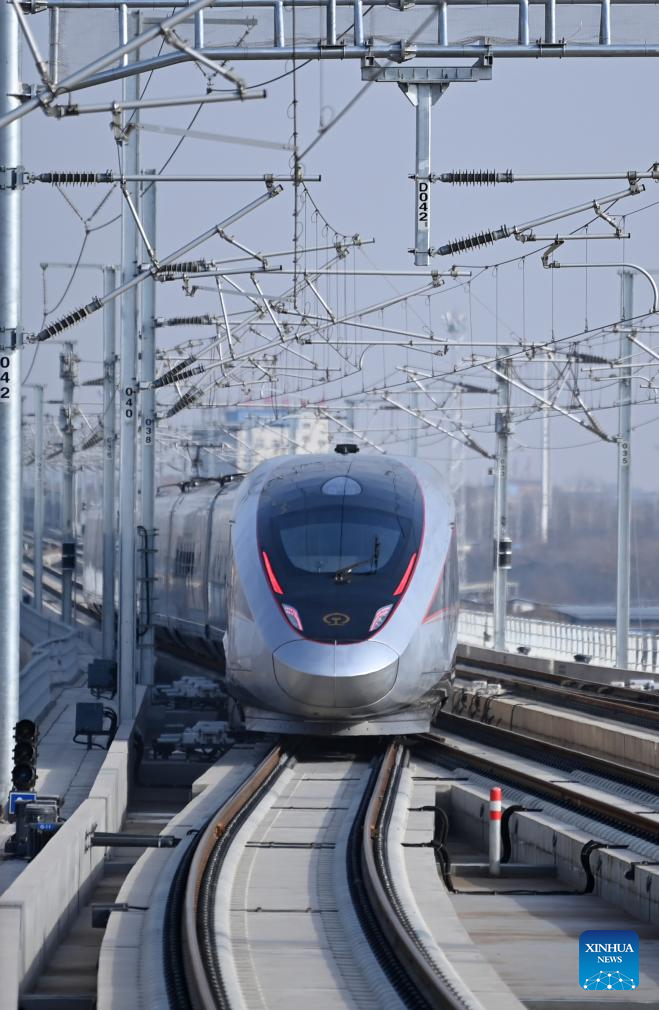Designed for operations of up to 350 km per hour, the line marked the fastest train running on the Loess Plateau. (Xinhua/Zhang Bowen)