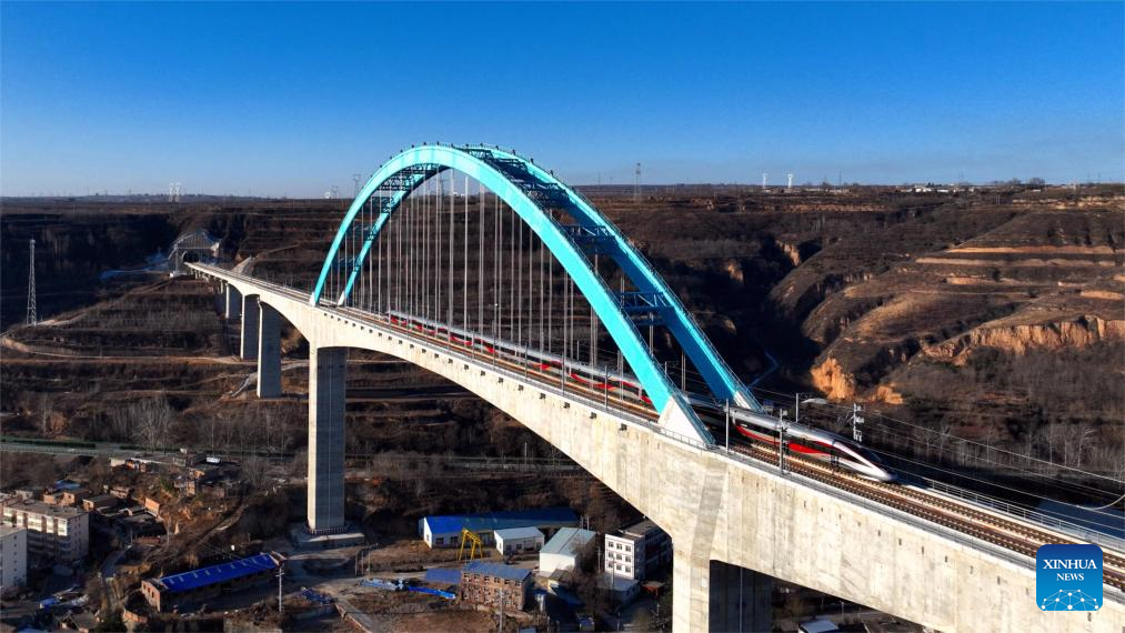 Designed for operations of up to 350 km per hour, the line marked the fastest train running on the Loess Plateau. (Xinhua/Shao Rui)