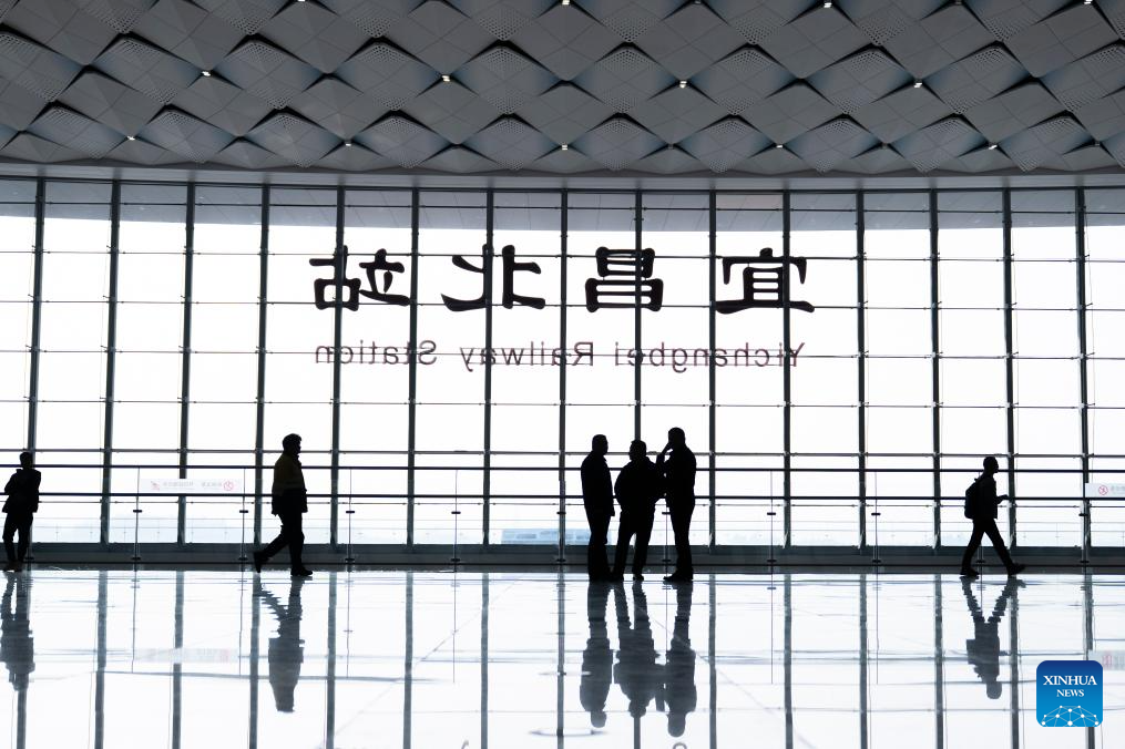 Passengers are pictured at the waiting hall of the Yichang North Railway Station in Yichang, central China's Hubei Province, Dec. 26, 2025. The Wuhan-Yichang section of a high-speed railway linking east China's Shanghai, southwest China's Chongqing and Chengdu of southwest China's Sichuan Province was officially put into operation on Friday.