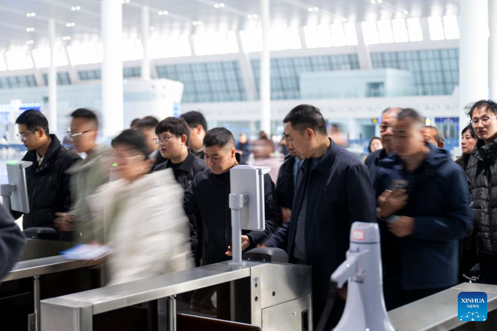 Passengers check in at the waiting hall of the Yichang North Railway Station in Yichang, central China's Hubei Province, Dec. 26, 2025. The Wuhan-Yichang section of a high-speed railway linking east China's Shanghai, southwest China's Chongqing and Chengdu of southwest China's Sichuan Province was officially put into operation on Friday.