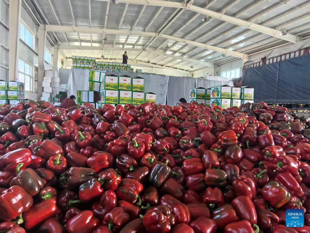 Harvested bell peppers to be exported to Kazakhstan are seen in Fengzhuang Village, Zhongwei City, northwest China's Ningxia Hui Autonomous Region, Nov. 27, 2025. (Xinhua)