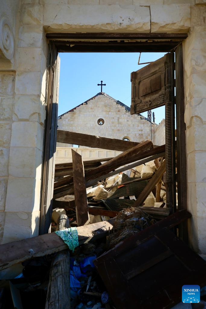 This photo taken on Dec. 25, 2025 shows a church destroyed by the Israeli army during the war, in southern Lebanese village of Yaroun. The church had stood for 102 years. (Photo by Ali Hashisho/Xinhua)