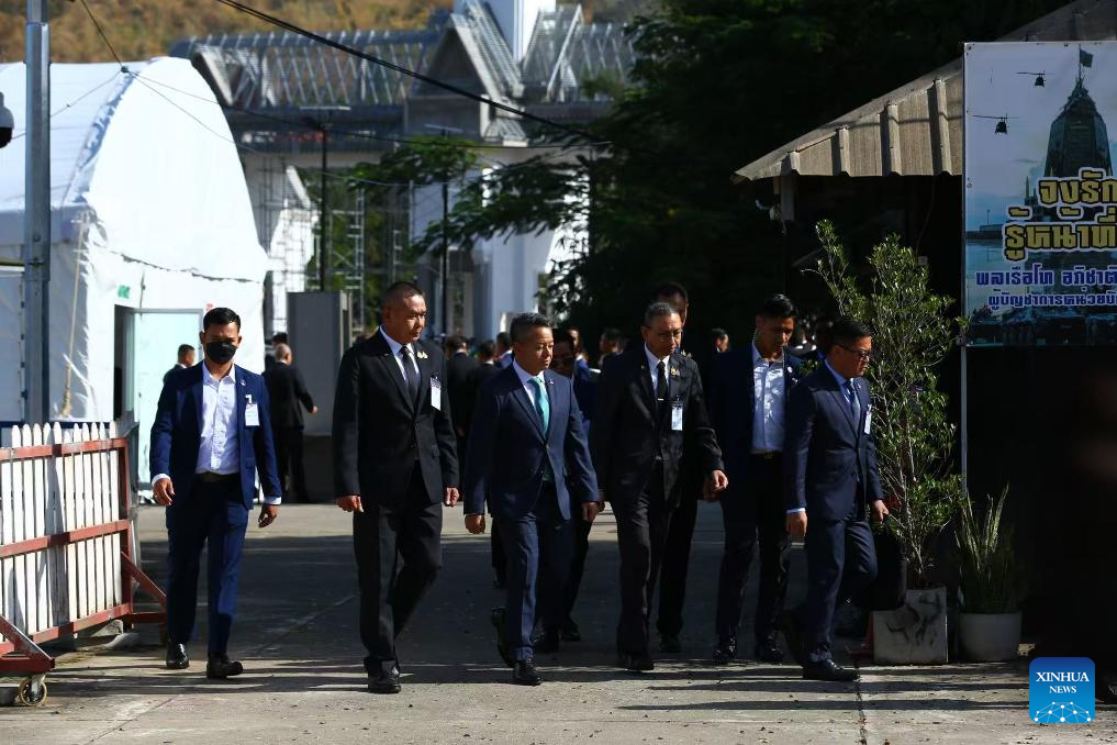 Cambodian Deputy Prime Minister and Defense Minister Tea Seiha (3rd L) arrives for ceasefire talks with Thailand at a border checkpoint in Chanthaburi Province, Thailand, Dec. 27, 2025. Thailand and Cambodia signed an agreement on ceasefire on Saturday. (Xinhua/Sun Weitong)