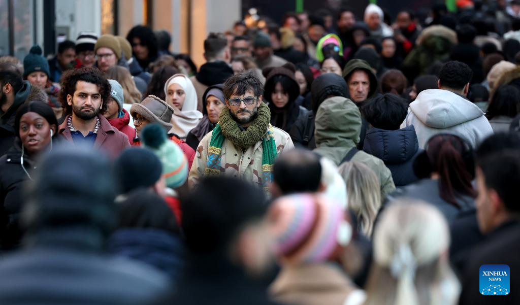 Shoppers walk on Oxford Street during Boxing Day sales in London, Britain, on Dec. 26, 2025. (Xinhua/Li Ying)