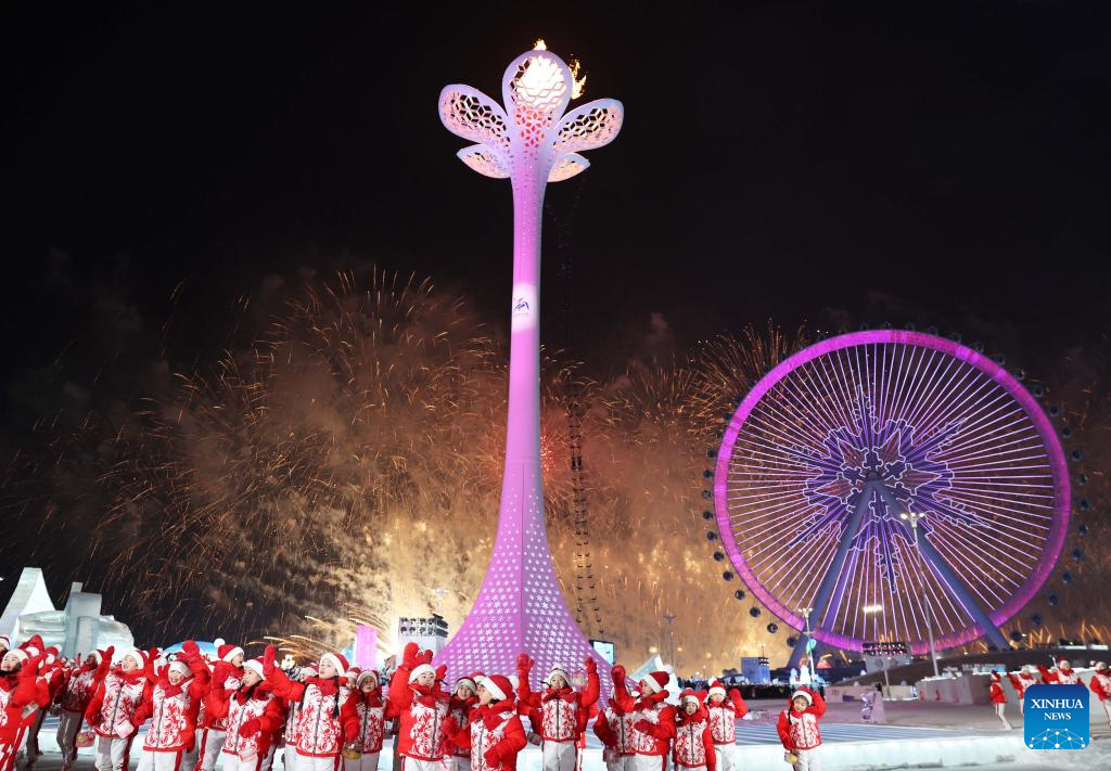 This file photo taken on Feb. 14, 2025 shows artists performing during the closing ceremony of the 9th Asian Winter Games in Harbin, northeast China's Heilongjiang Province. (Xinhua/Chen Yichen)