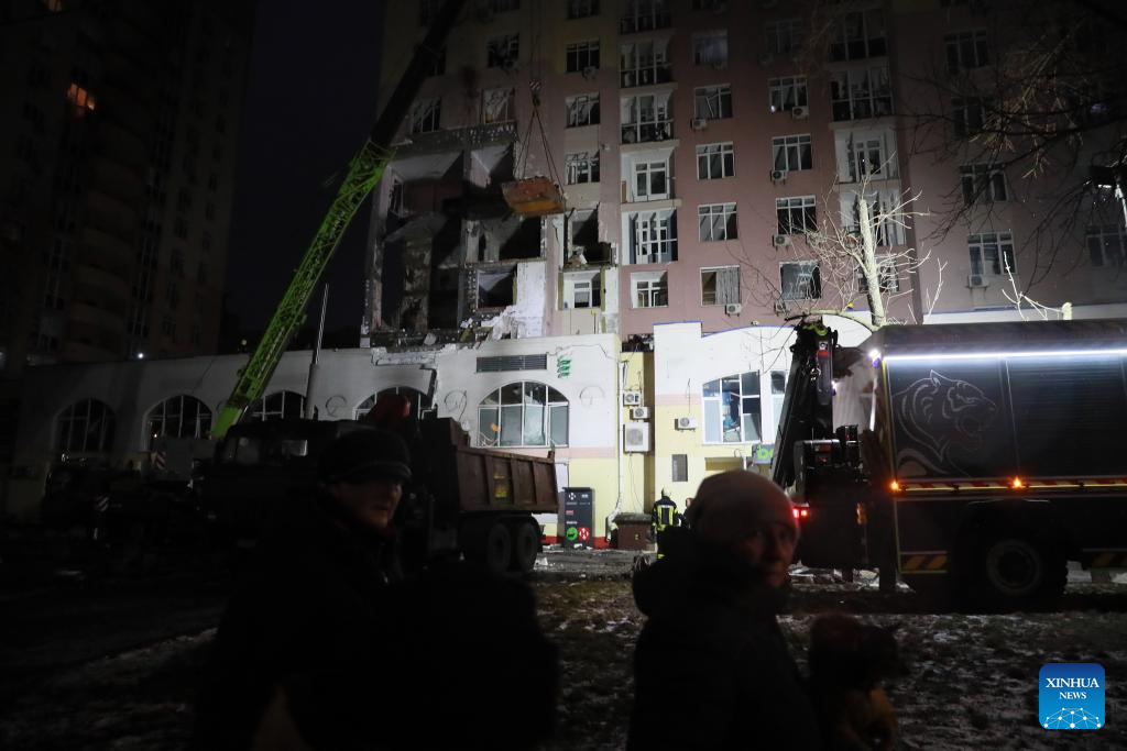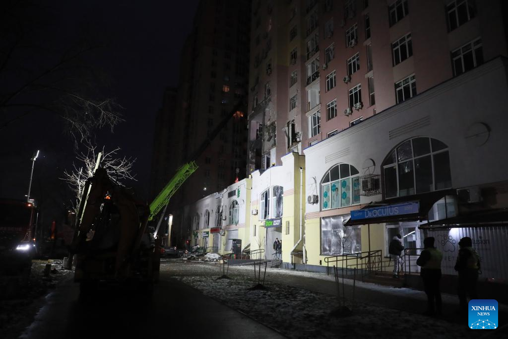 At least two persons were killed and 46 others were injured in Russian strikes on the Ukrainian capital and its outskirts in the early hours of Saturday, local authorities said. (Xinhua/Li Dongxu)