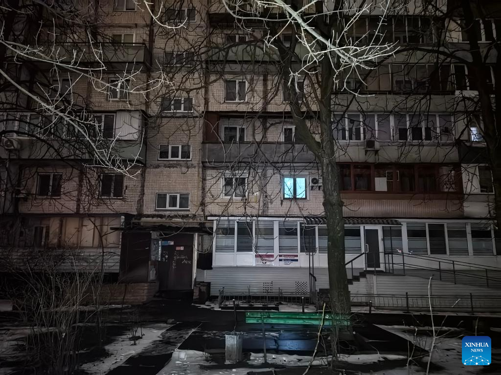 This photo shows a building during a power outage in Kiev, capital of Ukraine, Dec. 27, 2025.