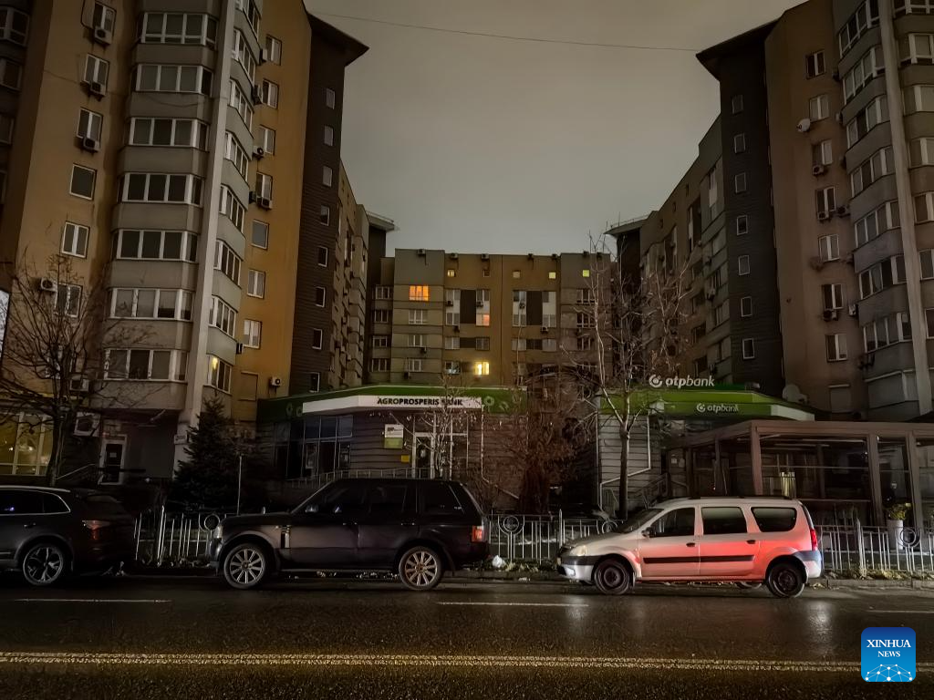 This photo shows buildings during a power outage in Kiev, capital of Ukraine, Dec. 27, 2025.