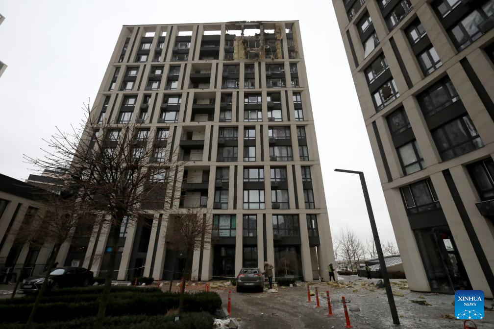 This photo taken on Dec. 27, 2025 shows a damaged building in Kiev region, Ukraine.