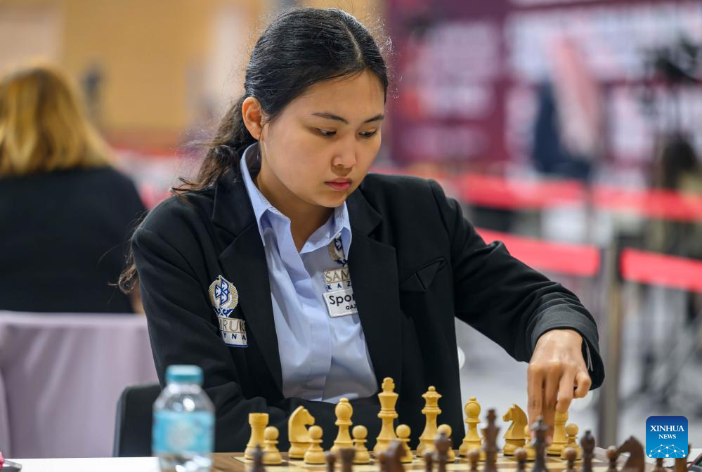 Bibisara Assaubayeva of Kazakhstan competes during the women's rapid fifth round against Padmini Rout of India at the FIDE World Rapid & Blitz Championships 2025 in Doha, Qatar, on Dec. 27, 2025. (Photo by Nikku/Xinhua)