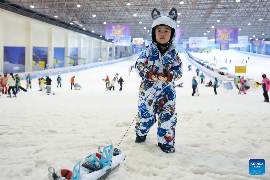 Tourists ski at the Ice and Snow world of the Taihu Lake Longemont Paradise in Changxing County of Huzhou City, east China's Zhejiang Province, Dec. 29, 2025. Skiing and a variety of other winter sports have become a popular seasonal pastime for a growing number of people in Zhejiang Province. The province boasts many ice and snow resorts, both indoor and outdoor, providing ample choices for enthusiasts. Notable examples include the Wansongling Ski Resort in Hangzhou, Qiaobo Ice and Snow World in Shaoxing, Taihu Lake Longemont Paradise in Huzhou, SkyLand ski resort in Anji, and Pan'an ski Resort in Jinhua. Moreover, such facilities are increasingly taking root across the province.