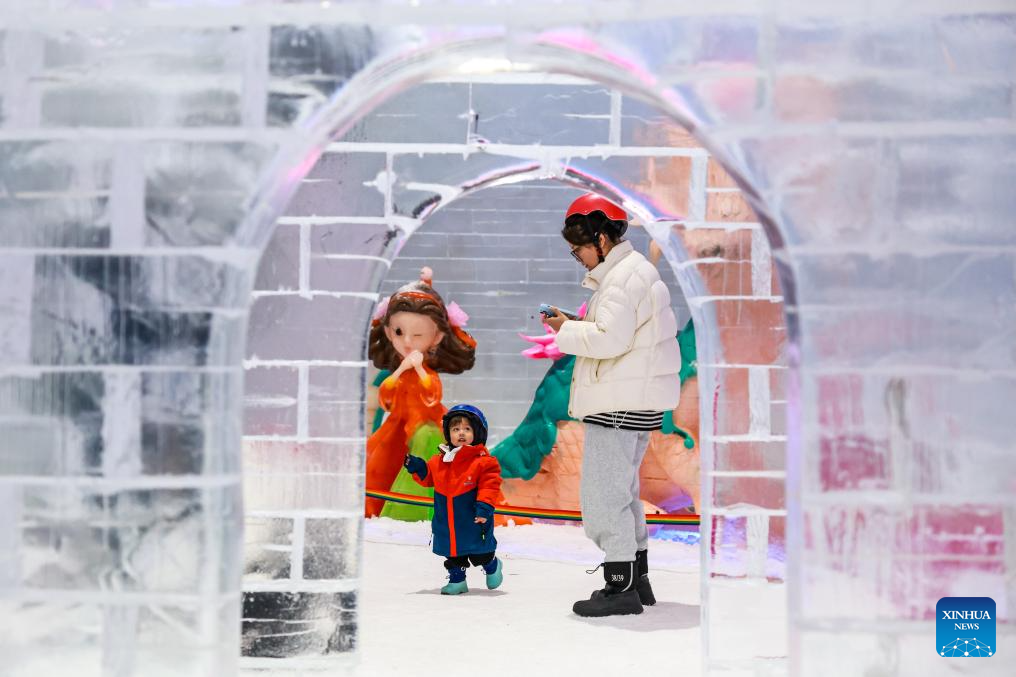 Tourists walk at the ice and snow world of the Taihu Lake Longemont Paradise in Changxing County of Huzhou City, east China's Zhejiang Province, Dec. 29, 2025. Skiing and a variety of other winter sports have become a popular seasonal pastime for a growing number of people in Zhejiang Province. The province boasts many ice and snow resorts, both indoor and outdoor, providing ample choices for enthusiasts. Notable examples include the Wansongling Ski Resort in Hangzhou, Qiaobo Ice and Snow World in Shaoxing, Taihu Lake Longemont Paradise in Huzhou, SkyLand ski resort in Anji, and Pan'an ski Resort in Jinhua. Moreover, such facilities are increasingly taking root across the province.