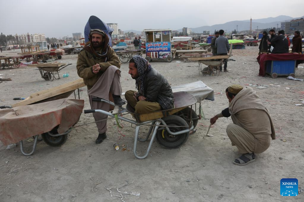Unemployed people wait for employers in Kabul, Afghanistan, Dec. 29, 2025. (Photo by Saifurahman Safi/Xinhua)