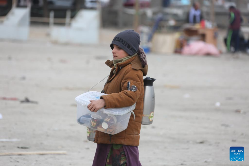 An Afghan girl peddles tea in Kabul, Afghanistan, Dec. 29, 2025. (Photo by Saifurahman Safi/Xinhua)