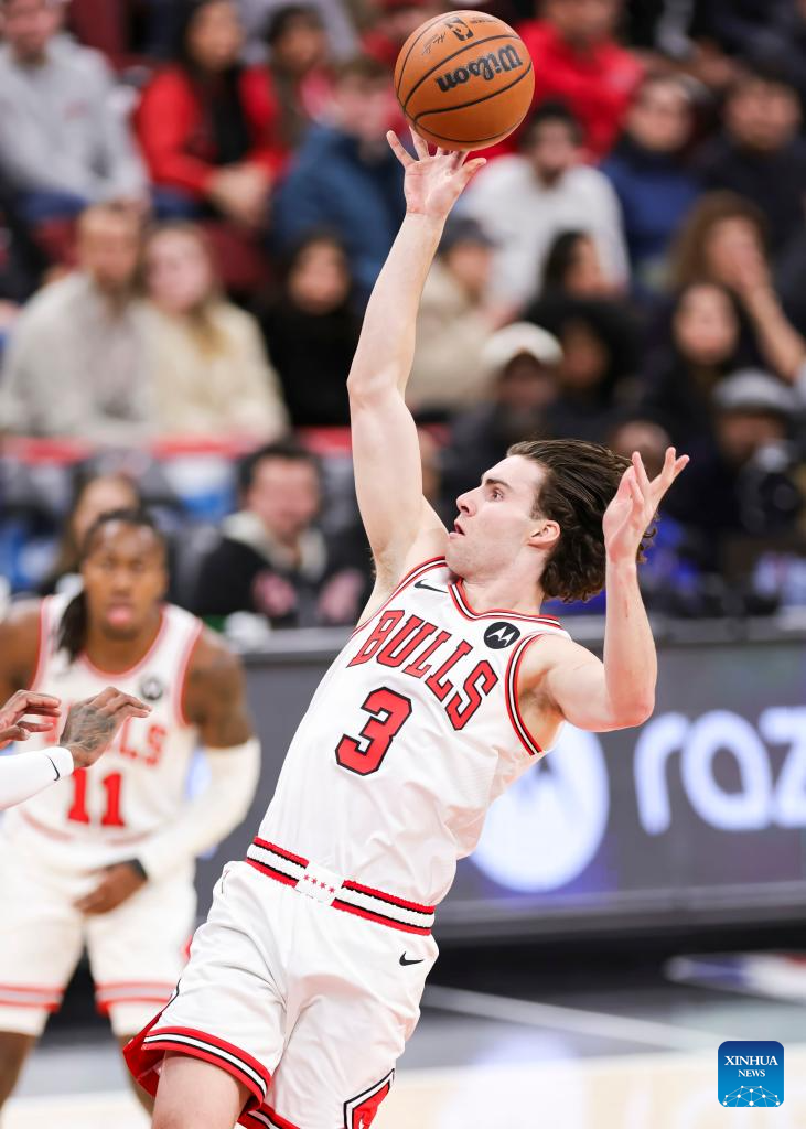Chicago Bulls' Josh Giddey shoots the ball during the 2025-2026 NBA regular season basketball game between Minnesota Timberwolves and Chicago Bulls in Chicago, the United States, Dec. 29, 2025. (Photo by Joel Lerner/Xinhua)