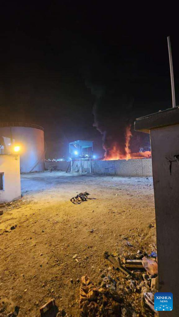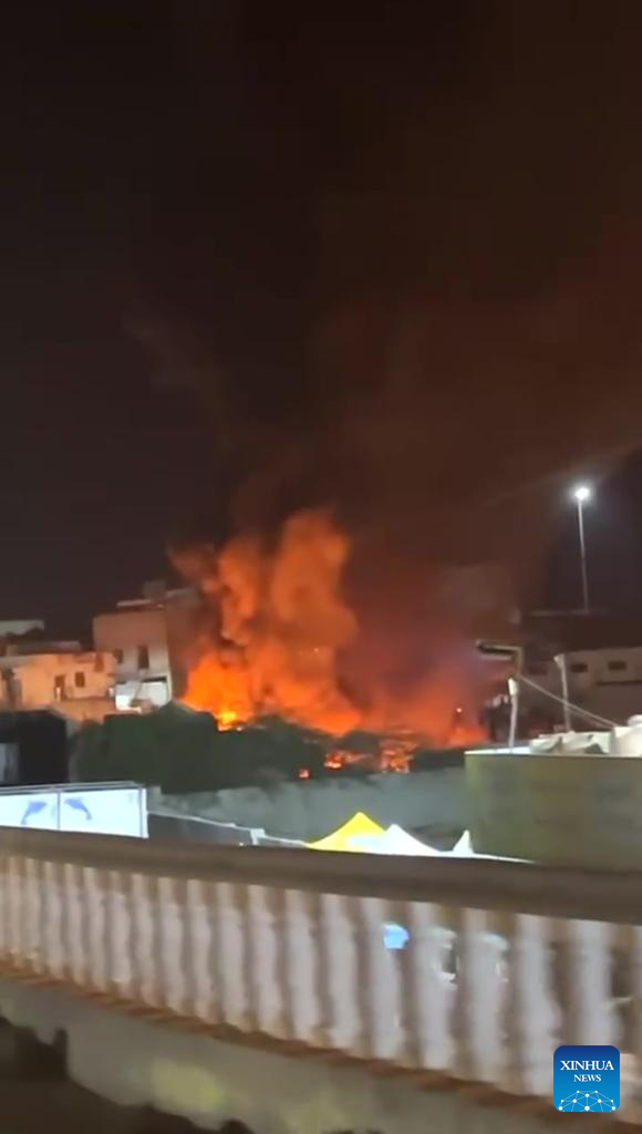 This video snapshot captured on Dec. 30, 2025 shows the fire caused by airstrikes in Mukalla Port, Hadramout, Yemen. Saudi warplanes carried out airstrikes on Tuesday morning targeting the port of Mukalla in Yemen's southeastern oil-rich province of Hadramout, a local security official told Xinhua. (Xinhua)