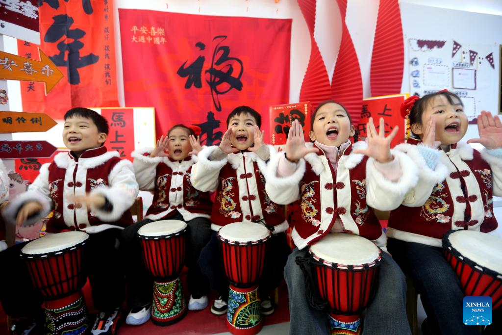 Children participate in a New Year celebration at a kindergarten in Nanjing, east China's Jiangsu Province, on Dec. 31, 2025. Various activities were held across China to celebrate the upcoming new year. (Photo by Fang Dongxu/Xinhua)