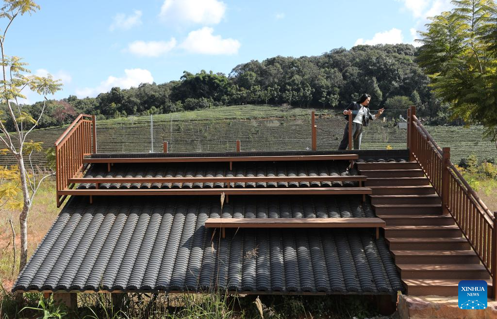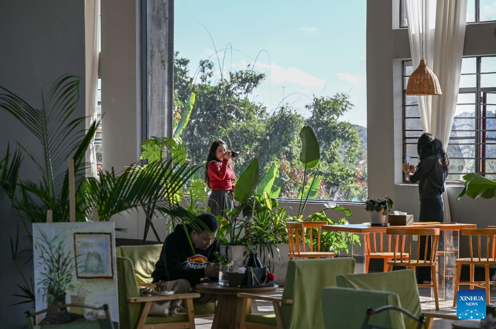 Tourists enjoy their time at a studio in Dadugang Township of Jinghong City, Xishuangbanna Dai Autonomous Prefecture, southwest China's Yunnan Province, Dec. 20, 2025. Wei Chun used to work at an international hotel in a first-tier city. In June 2024, she became an agricultural manager of a collective economy company in Dadugang Township, a role locals refer to as the "Village CEO."