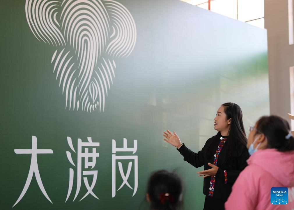 Wei Chun introduces the logo of Dadugang Township at a studio in Dadugang Township of Jinghong City, Xishuangbanna Dai Autonomous Prefecture, southwest China's Yunnan Province, Dec. 21, 2025. Wei Chun used to work at an international hotel in a first-tier city. In June 2024, she became an agricultural manager of a collective economy company in Dadugang Township, a role locals refer to as the "Village CEO."