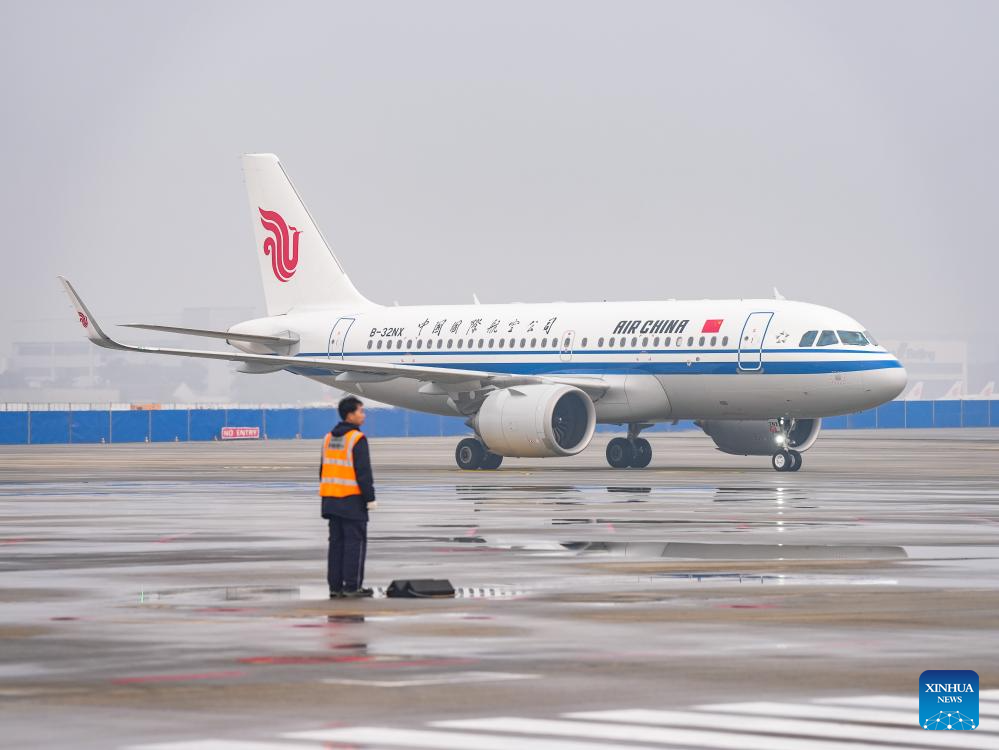 Air China flight CA4182 arrives at the Chengdu Shuangliu International Airport in Chengdu, southwest China's Sichuan Province, on Dec. 31, 2025.