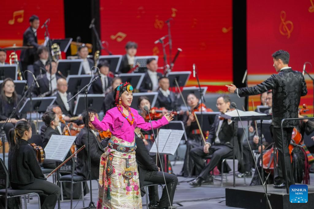 Musicians perform at a New Year concert held at Xizang grand theater in Lhasa, southwest China's Xizang Autonomous Region, on Dec. 30, 2025. (Xinhua/Jigme Dorje)