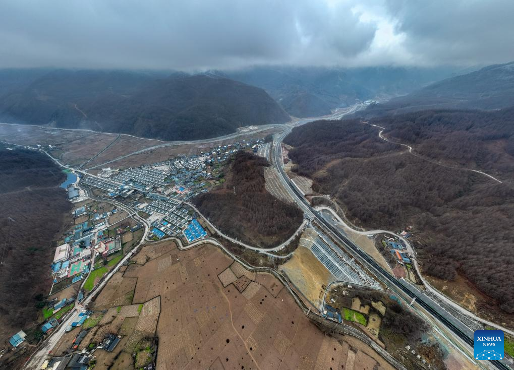 An aerial drone photo taken on Dec. 27, 2025 shows a view of the Leshan-Xichang Expressway in Leibo County, southwest China's Sichuan Province. The Mabian-Zhaojue section of the Leshan-Xichang Expressway in Sichuan Province will open to traffic on Jan. 1, 2026. Once it opens, travel time between Zhaojue County and Mabian County will be reduced from about five hours to 1.5 hours. (Xinhua/Jiang Hongjing)