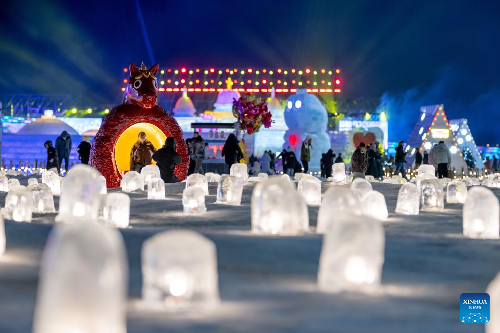 Tourists visit an ice and snow festival at the Daheihe military cultural park in Hohhot, north China's Inner Mongolia Autonomous Region, Dec. 31, 2025.