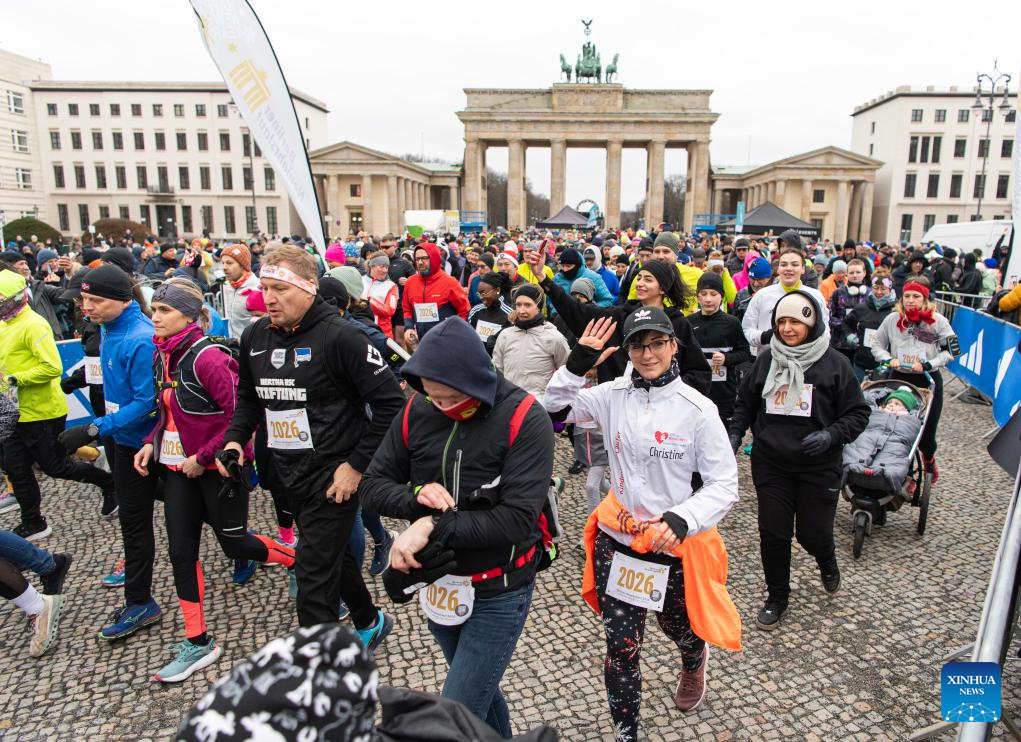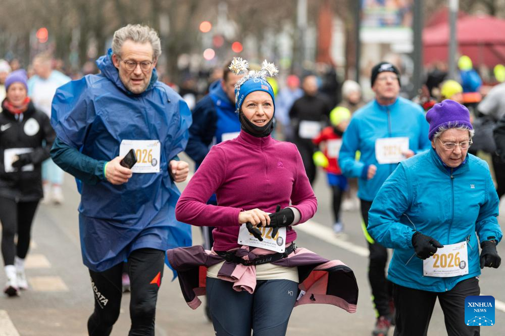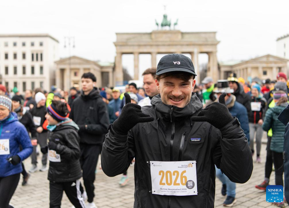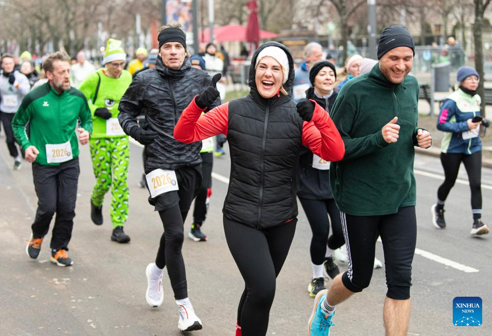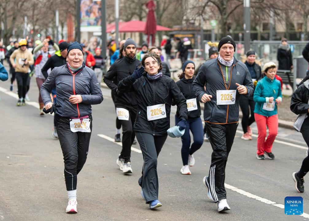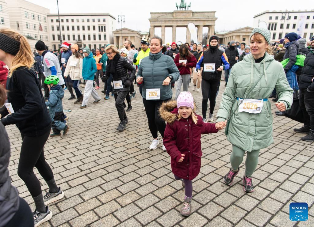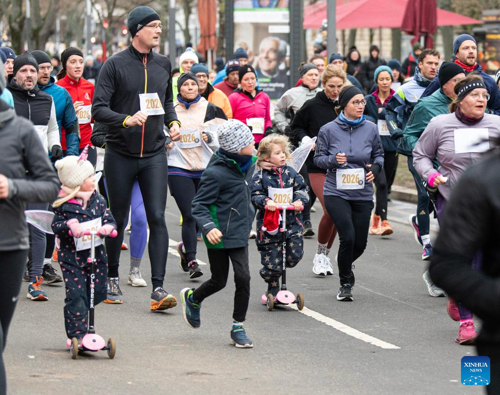 People take part in the New Year's Run in Berlin, Germany, Jan. 1, 2026. (Xinhua/Zhang Haofu)