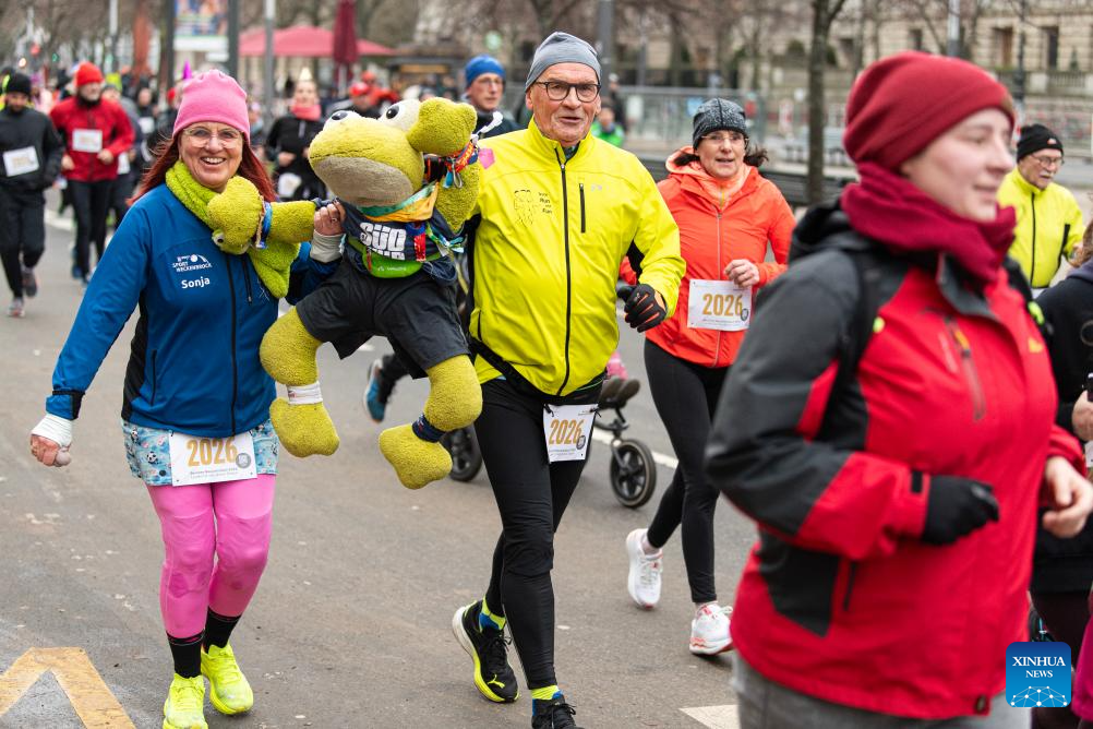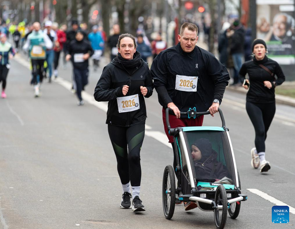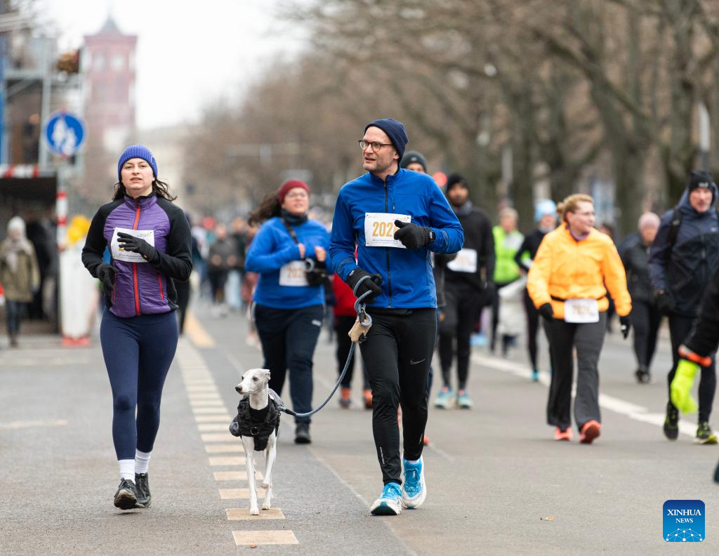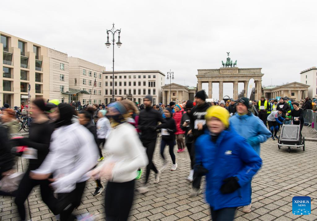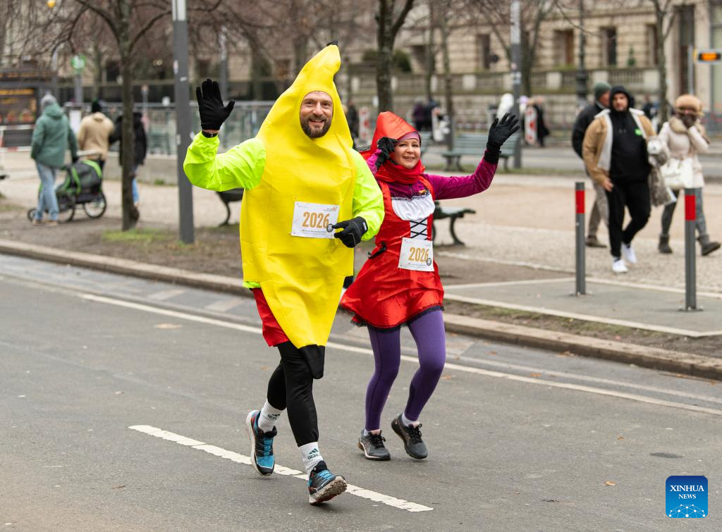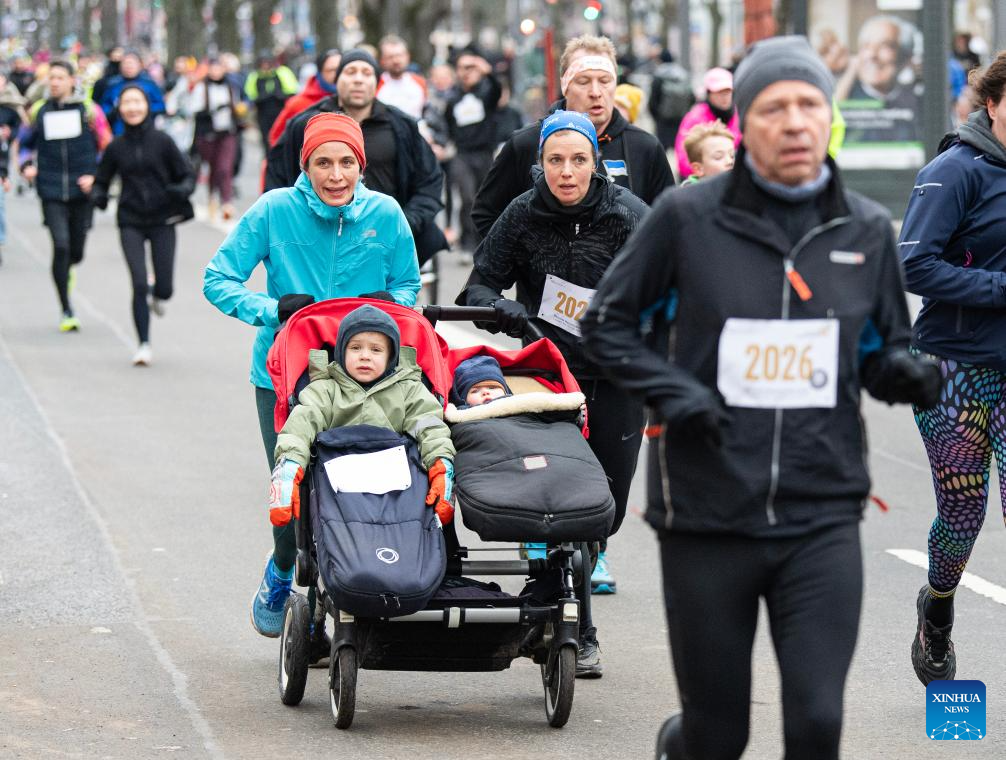 People take part in the New Year's Run in Berlin, Germany, Jan. 1, 2026. (Xinhua/Zhang Haofu)