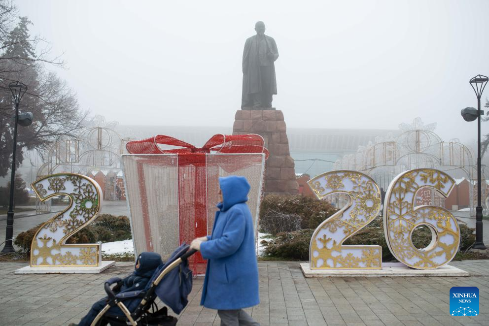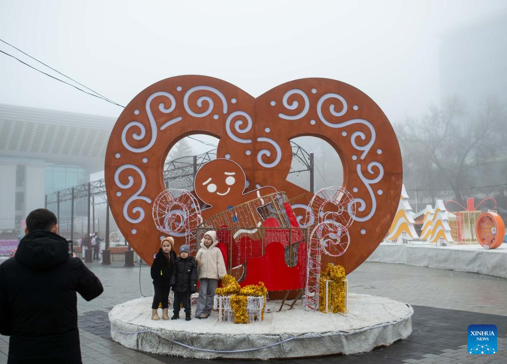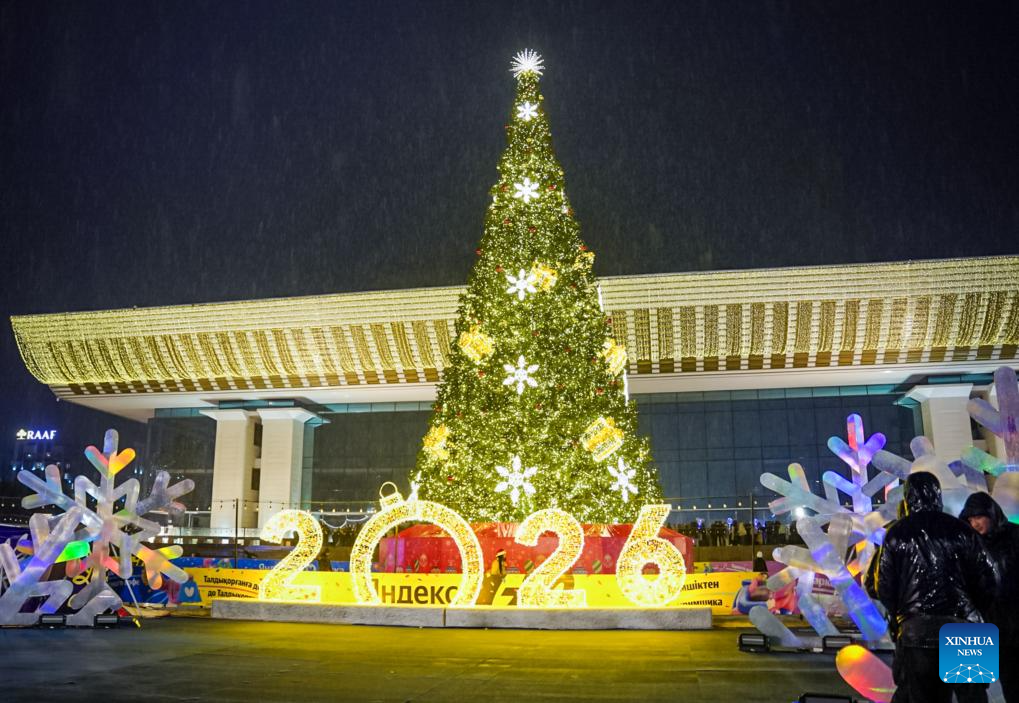 Photo taken on Dec. 31, 2025 shows New Year decorations in Almaty, Kazakhstan. (Xinhua/Li Renzi)