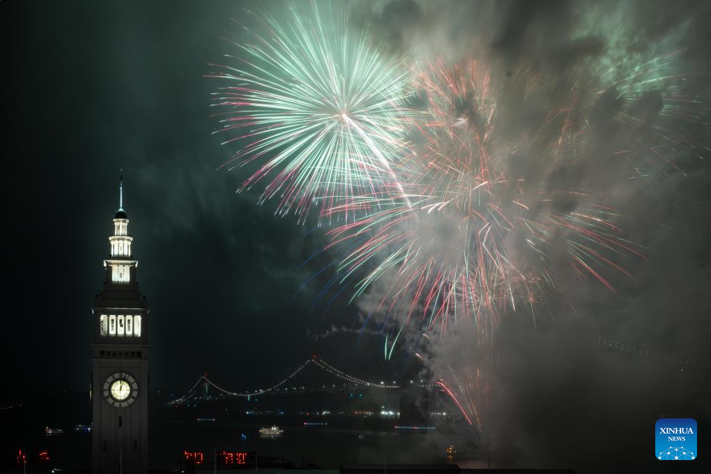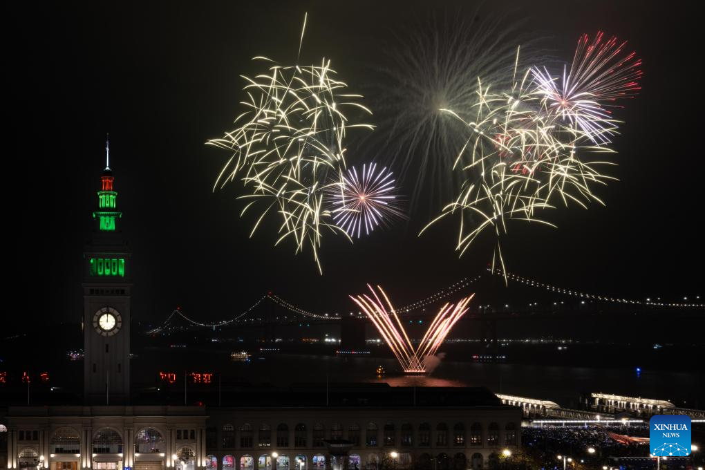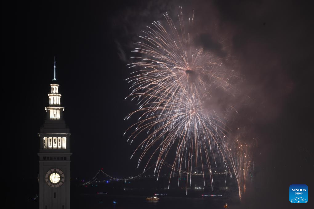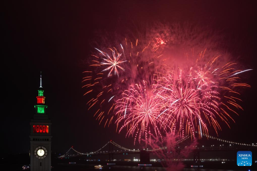 Fireworks are pictured during a New Year's Eve event to welcome the arrival of 2026 in San Francisco, California, the United States, Jan. 1, 2026. (Photo by Zhu Ziyu/Xinhua)