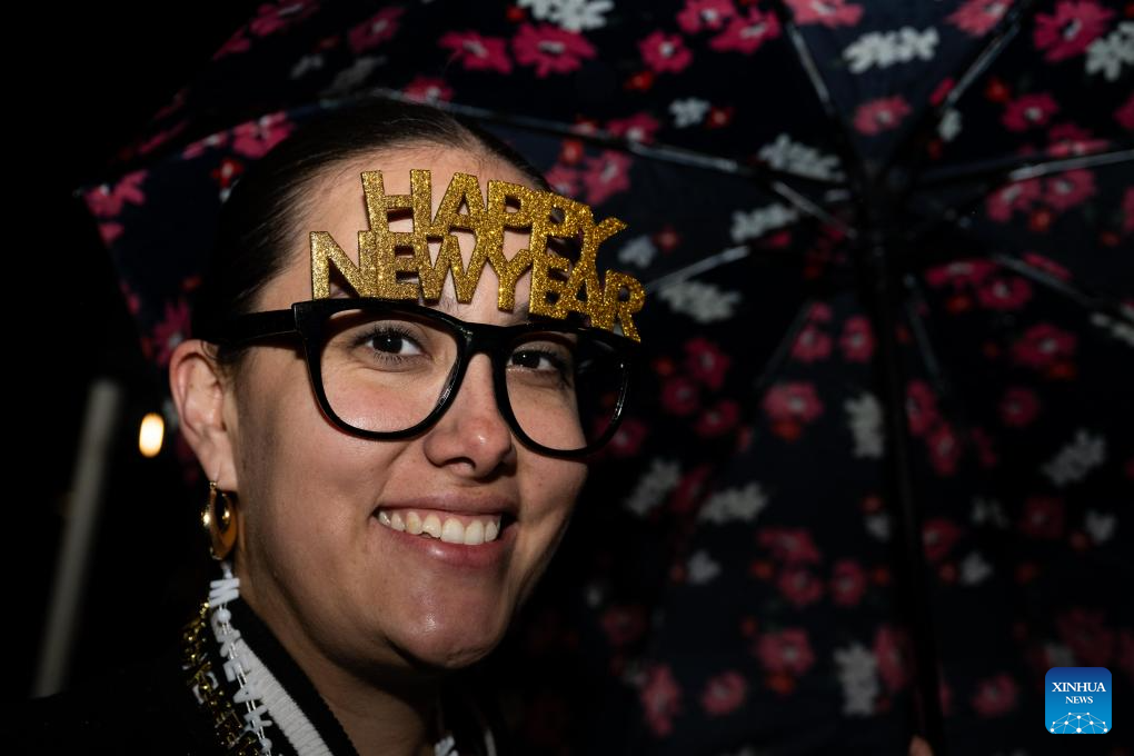People attend a New Year celebration event at the Times Square in New York, the United States, Dec. 31, 2025. (Xinhua/Zhang Fengguo)