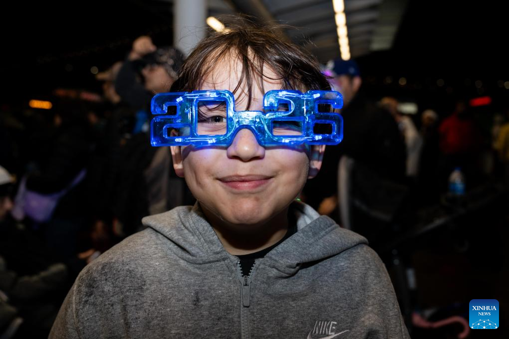 A kid participates in a New Year's Eve event to welcome the arrival of 2026 in San Francisco, California, the United States, Dec. 31, 2025. (Photo by Zhu Ziyu/Xinhua)