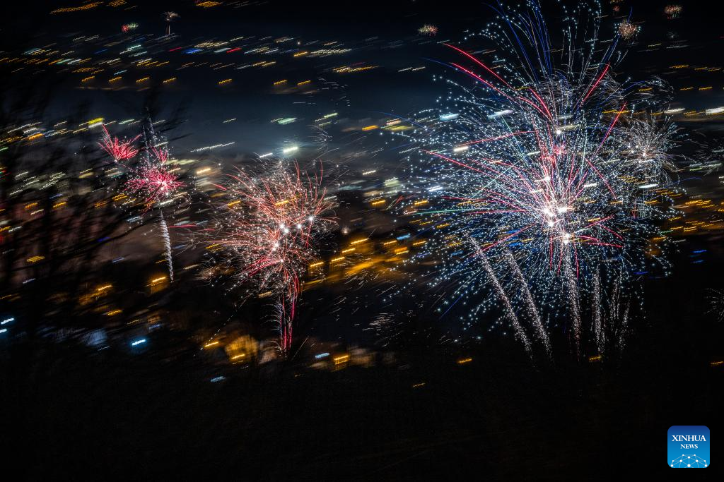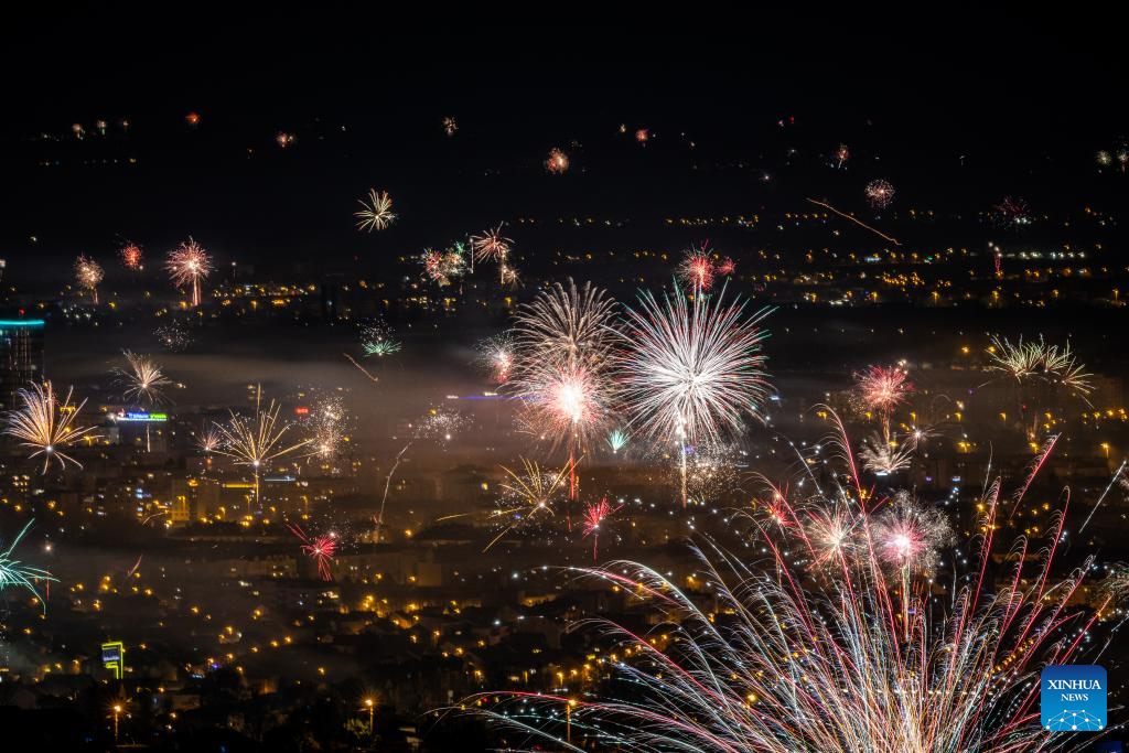 This photo shows the New Year's fireworks above Zagreb, Croatia, on Jan. 1, 2026. (Emica Elvedji/PIXSELL via Xinhua)pagebreak