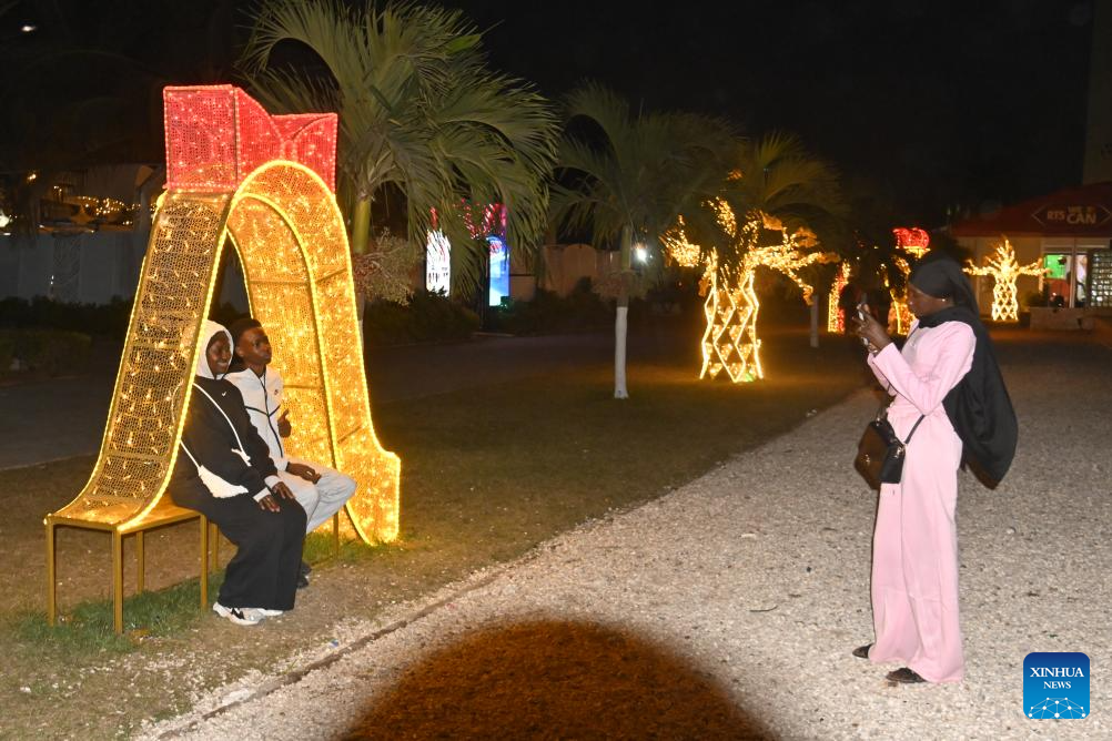 People pose for photos to greet the New Year at the Place de la Nation in Dakar, Senegal, Dec. 31, 2025. (Photo by Papa Demba Gueye/Xinhua)