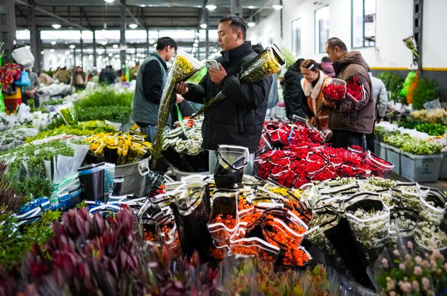 People visit the Dounan Flower Market in Kunming, southwest China's Yunnan Province, Dec. 31, 2025.(Xinhua/Chen Xinbo)Flowers are pictured at the Dounan Flower Market in Kunming, southwest China's Yunnan Province, Dec. 31, 2025. Xinhua/Chen Xinbo)Tourists check their selfies at the Dounan Flower Market in Kunming, southwest China's Yunnan Province, Dec. 31, 2025. (Xinhua/Chen Xinbo)People select fresh-cut flowers at the Dounan Flower Market in Kunming, southwest China's Yunnan Province, Dec. 31, 2025. (Xinhua/Chen Xinbo)A tourist poses for a photo at the Dounan Flower Market in Kunming, southwest China's Yunnan Province, Dec. 31, 2025. (Xinhua/Chen Xinbo)A tourist poses for a photo with a bunch of flowers at the Dounan Flower Market in Kunming, southwest China's Yunnan Province, Dec. 31, 2025. (Xinhua/Chen Xinbo)A merchant transports fresh-cut flowers at the Dounan Flower Market in Kunming, southwest China's Yunnan Province, Dec. 31, 2025. (Xinhua/Chen Xinbo)■