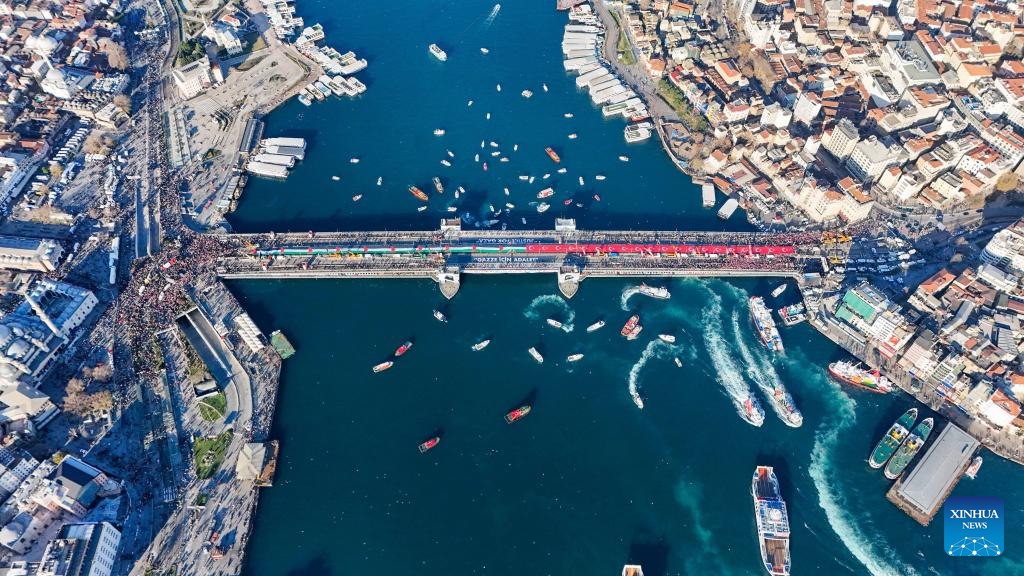 ISTANBUL, Jan. 1 (Xinhua) -- More than half a million people rallied in Türkiye's largest city Istanbul on New Year's Day to show solidarity with Gaza.