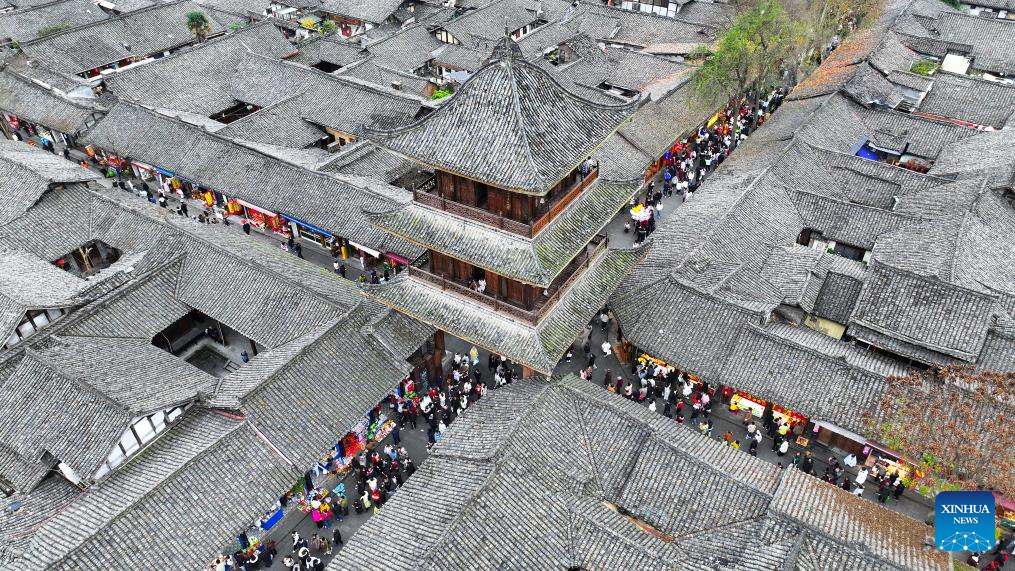 An aerial drone photo taken on Jan. 1, 2026 shows a huge influx of tourists in Langzhong ancient town of Langzhong City, southwest China's Sichuan Province. People across China celebrate the arrival of 2026 with a wide range of festivities on Thursday, the first day of the year. (Photo by Wang Yugui/Xinhua)