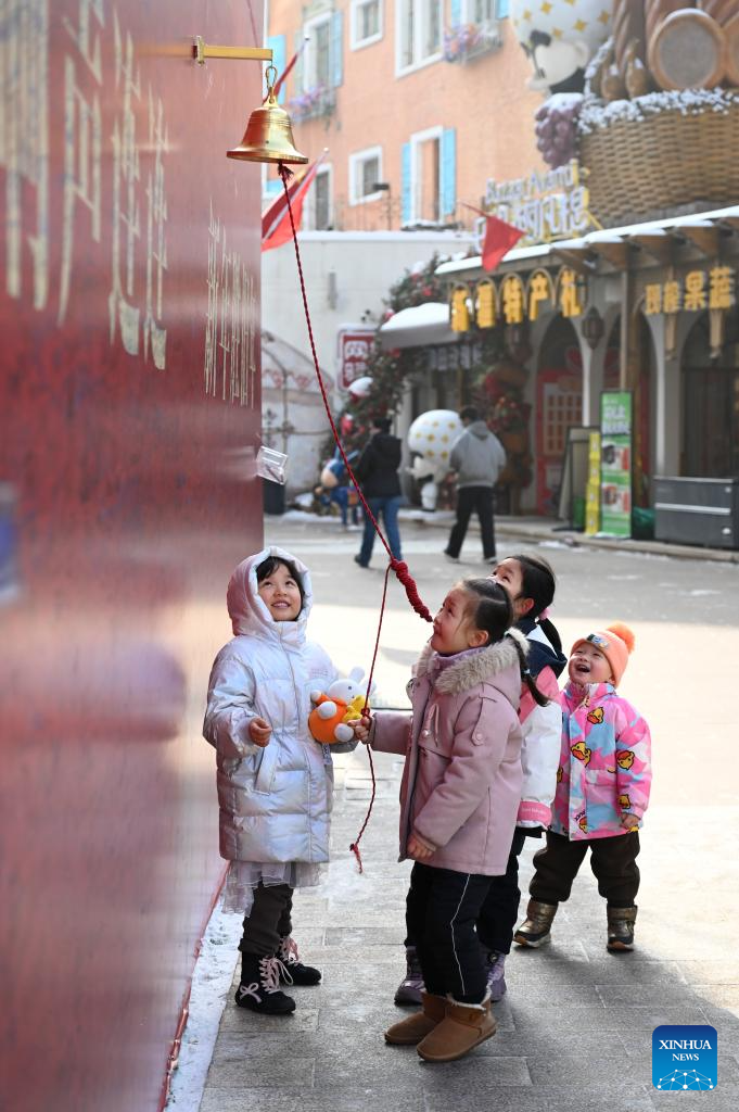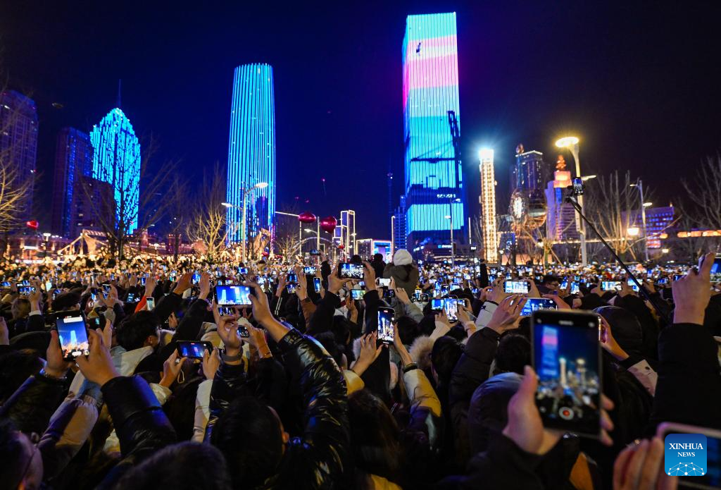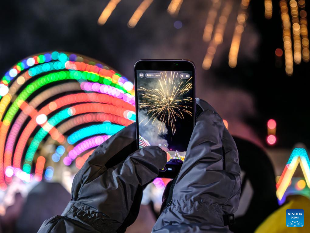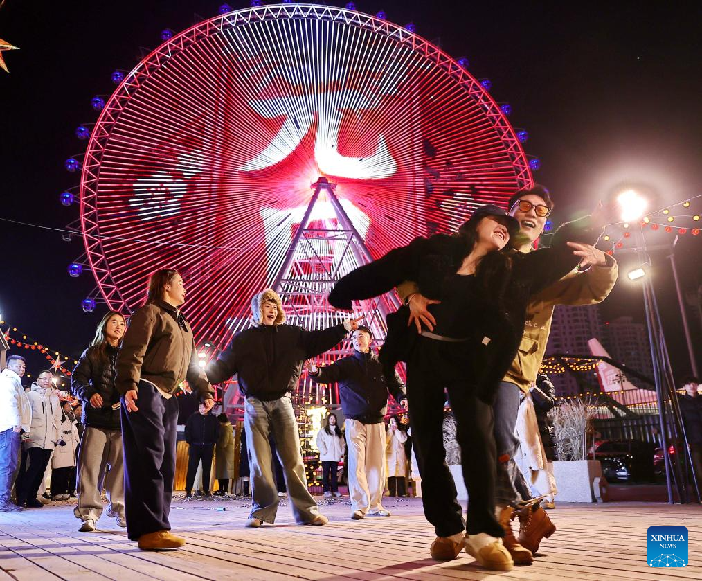 People have fun at the Heilongjiang Radio and TV Tower square in Harbin, northeast China's Heilongjiang Province, Dec. 31, 2025.
