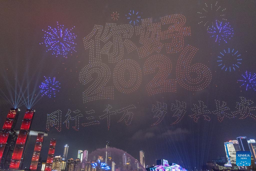 People gather for a New Year celebration event in Hong Kong, south China, Jan. 1, 2026.