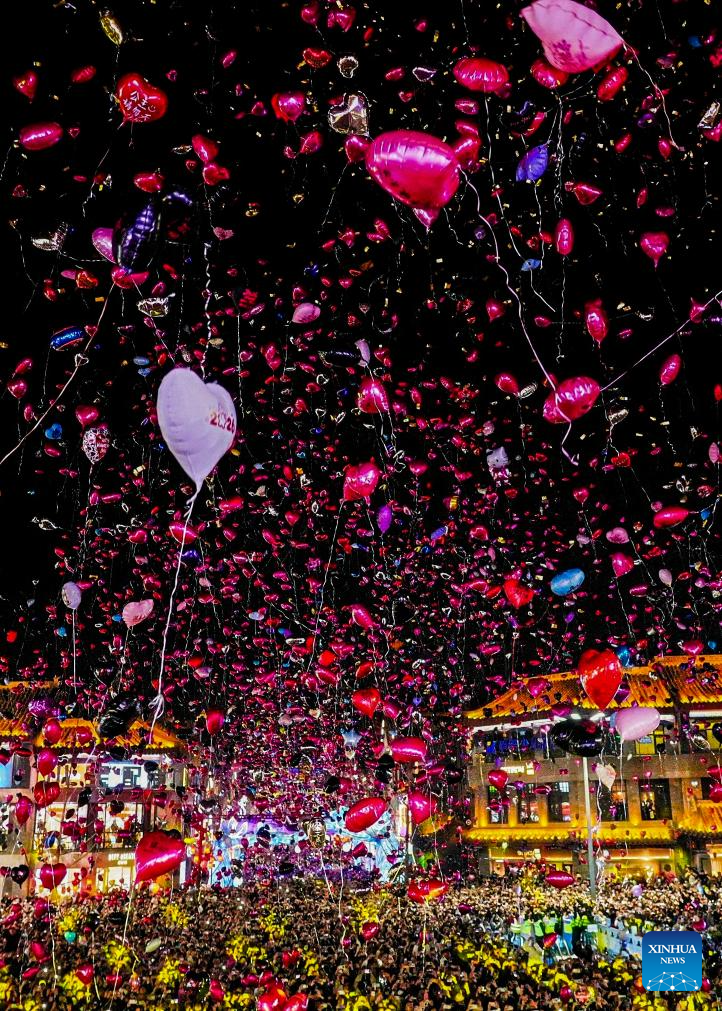 Balloons are released at a New Year celebration event in Qilihe District of Lanzhou, northwest China's Gansu Province, Jan. 1, 2026.