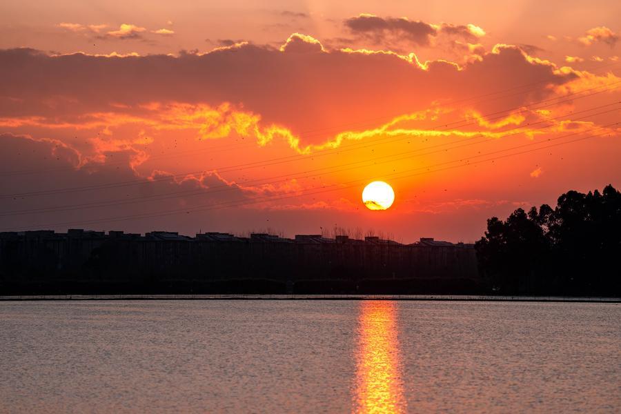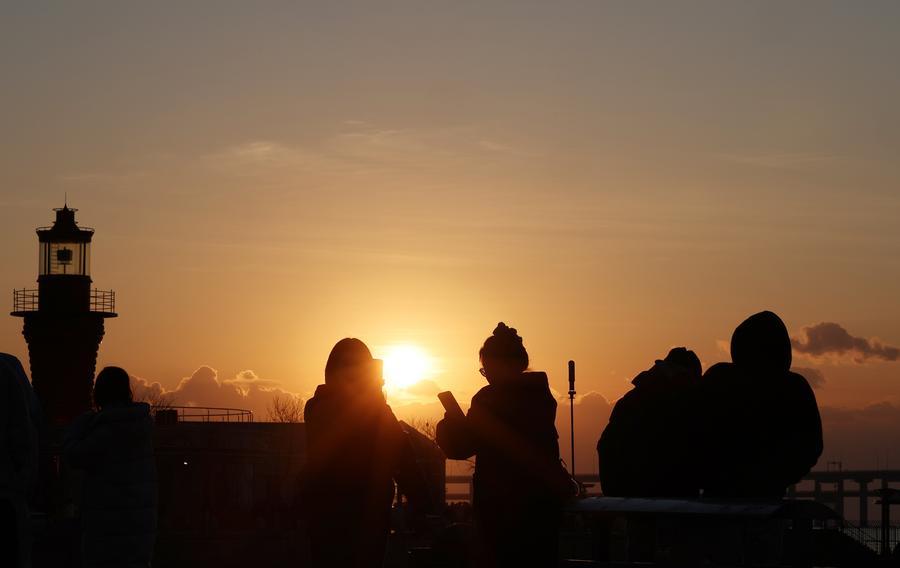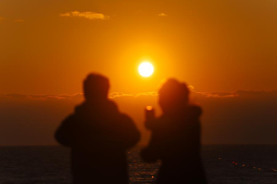 People enjoy the sunrise at a sightseeing platform in Eryuan County, southwest China's Yunnan Province, Jan. 1, 2026. (Photo by Luo Xincai/Xinhua)