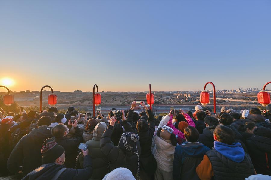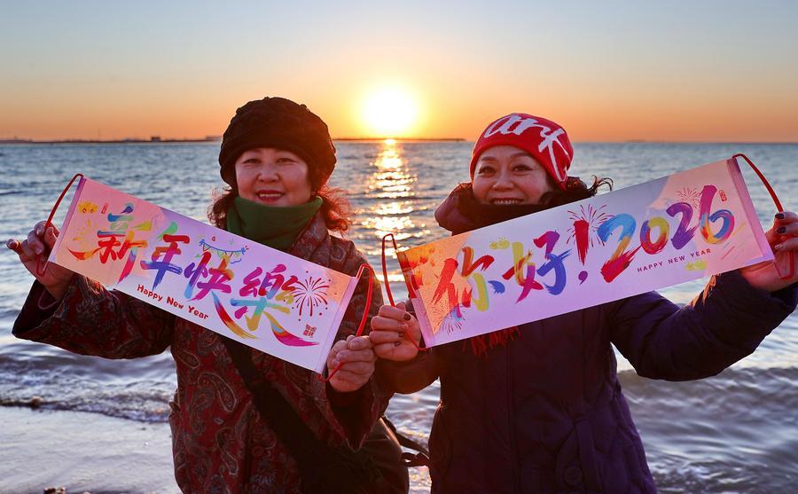 This photo taken on Jan. 1, 2026 shows the scenery of Dianchi Lake at sunrise in Kunming, southwest China's Yunnan Province. (Xinhua/Hu Chao)People watch the sunrise by the seaside at Xinghai Square in Dalian, northeast China's Liaoning Province, on Jan. 1, 2026. (Xinhua/Li Gang)This photo taken on Jan. 1, 2026 shows the scenery at sunrise in Beijing, capital of China. (Xinhua/Sun Ruibo)Winter swimming enthusiasts swim at a winter swimming base in Qiqihar City, northeast China's Heilongjiang Province, on Jan. 1, 2026. (Photo by Wang Yonggang/Xinhua)People watch the sunrise by the seaside at Shantou City, south China's Guangdong Province, on Jan. 1, 2026. (Photo by Yao Jun/Xinhua)People pose for photos at sunrise on a beach in Haigang District of Qinhuangdao City, north China's Hebei Province on Jan. 1, 2026. (Photo by Cao Jianxiong/Xinhua)This photo taken at the Jingshan Park on Jan. 1, 2026 shows the sunrise in Beijing, capital of China. (Xinhua/Li Xin)A drone photo taken in Luding County of southwest China's Sichuan Province shows a view of Mount Gongga at sunrise on Jan. 1, 2026. (Xinhua/Jiang Hongjing)People take photos of the sunrise scenery at the Jingshan Park in Beijing, capital of China, on Jan. 1, 2026. (Xinhua/Li Xin)An aerial drone photo taken on Jan. 1, 2026 shows the scenery of Yumuling Great Wall at sunrise in Qianxi County, north China's Hebei Province. (Photo by Liu Mancang/Xinhua)■