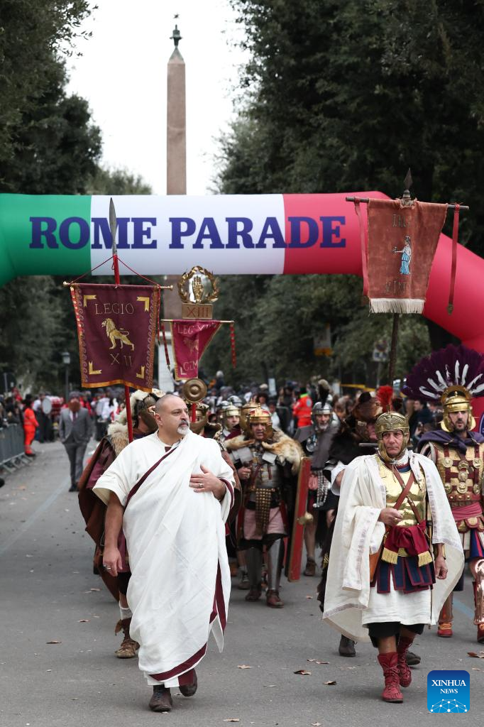 People dressed as Roman gladiators march during the new year parade in Rome, Italy, Jan. 1, 2026. (Xinhua/Li Jing)