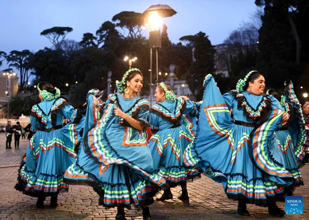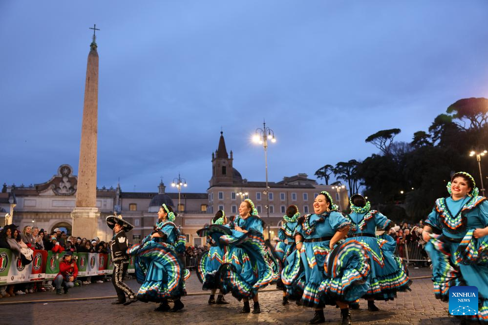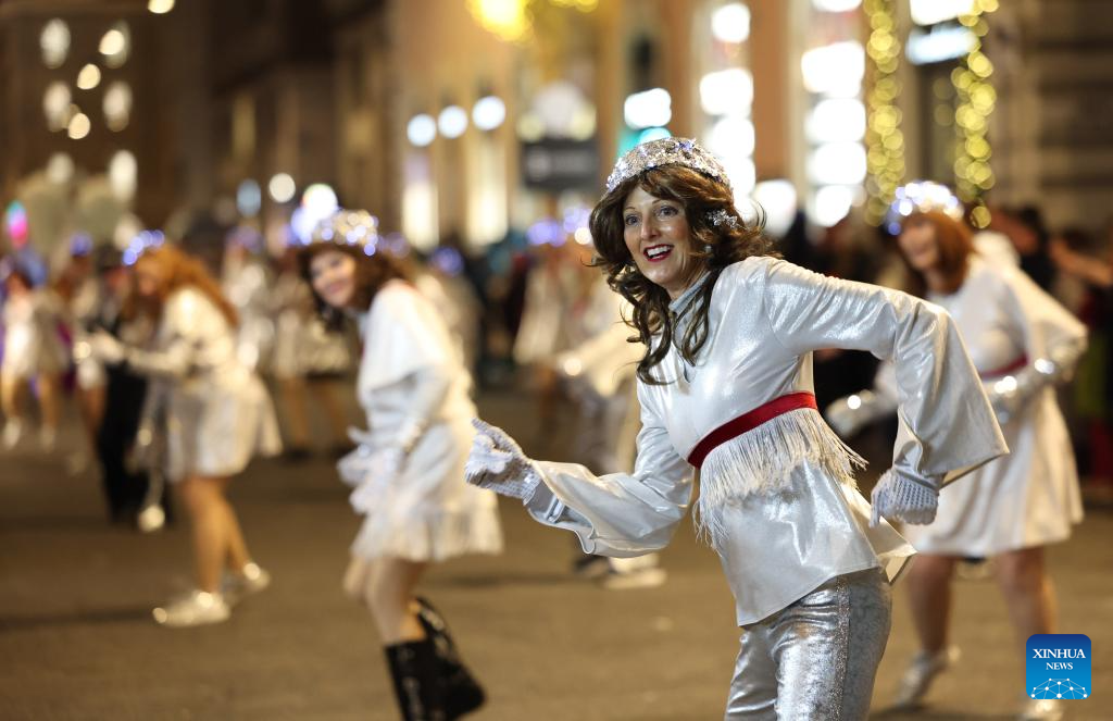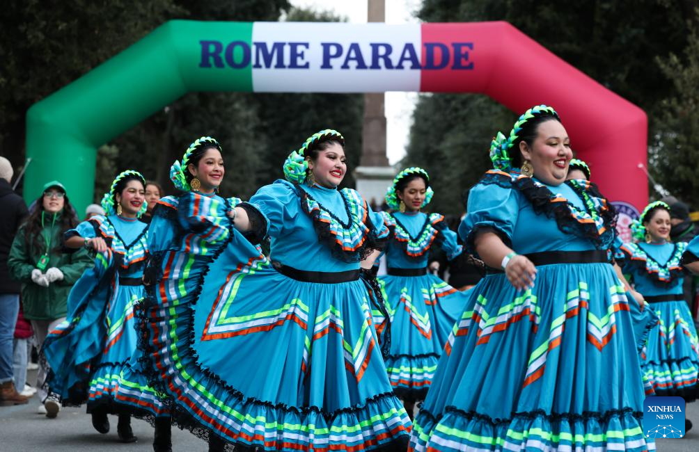 Dancers perform during the new year parade in Rome, Italy, Jan. 1, 2026. (Xinhua/Li Jing)