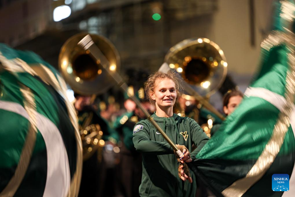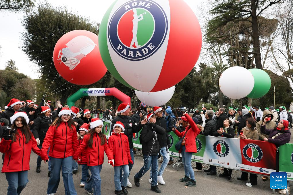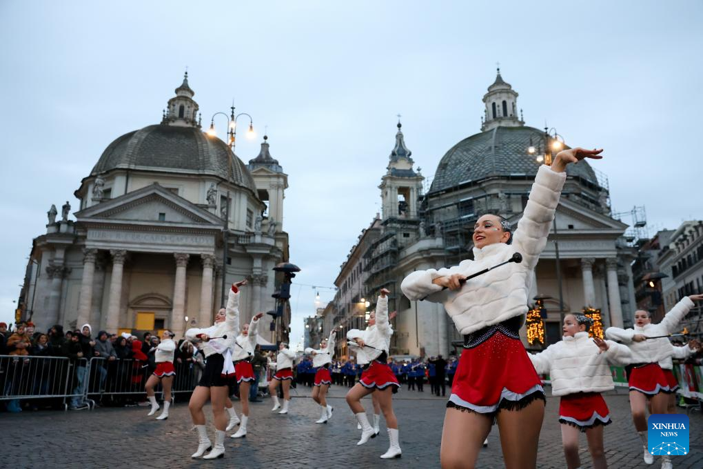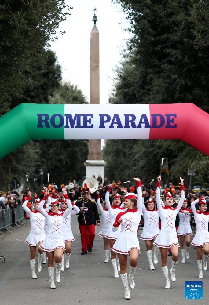 Performers march during the new year parade in Rome, Italy, Jan. 1, 2026. (Xinhua/Li Jing)