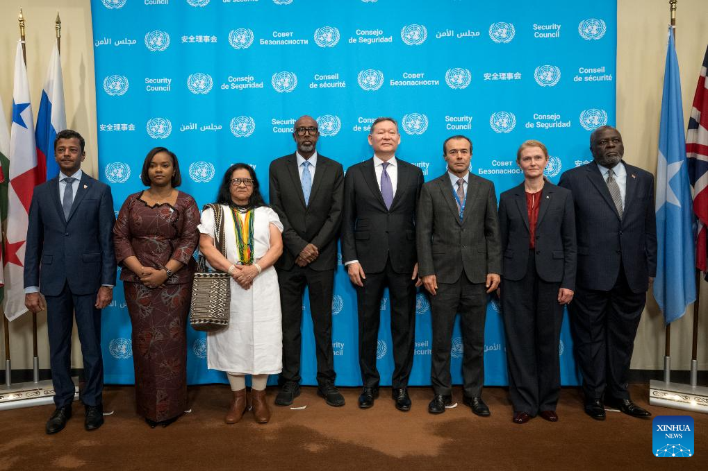 This photo taken on Jan. 2, 2026 shows a flag installation ceremony to mark the start of the responsibilities of the five countries as non-permanent members of the Security Council at the UN headquarters in New York. Bahrain, Colombia, the Democratic Republic of the Congo, Latvia and Liberia on Friday began to assume responsibilities as non-permanent members of the UN Security Council. (Mark Garten/UN Photo/Handout via Xinhua)