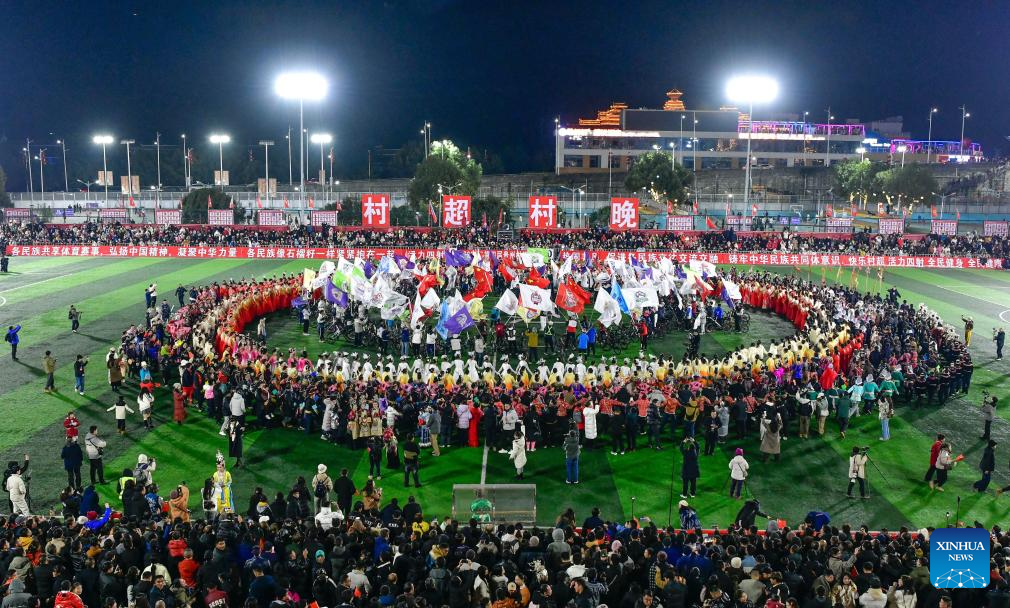 This photo taken on Jan. 2, 2026 shows the opening ceremony of 2026 China's Village Super League (VSL), dubbed "CunChao" in Rongjiang, southwest China's Guizhou Province. (Xinhua/Yang Wenbin)