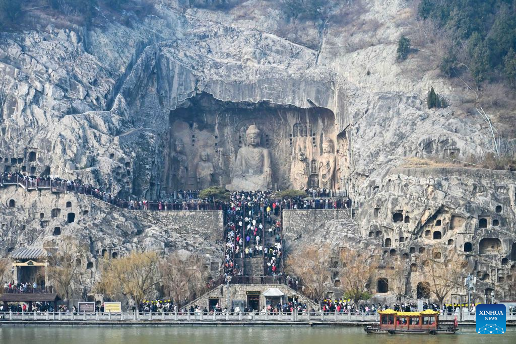 Tourists visit the Longmen Grottoes scenic spot in Luoyang City, central China's Henan Province, on Jan. 2, 2026. (Photo by Li Weichao/Xinhua)