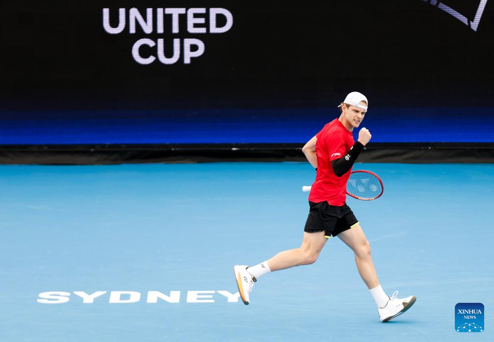 SYDNEY, Jan. 3 (Xinhua) -- Zhang Zhizhen produced a stirring performance on Saturday to overcome Zizou Bergs in a comeback victory as China edged Belgium at the mixed teams United Cup tennis tournament in Sydney.